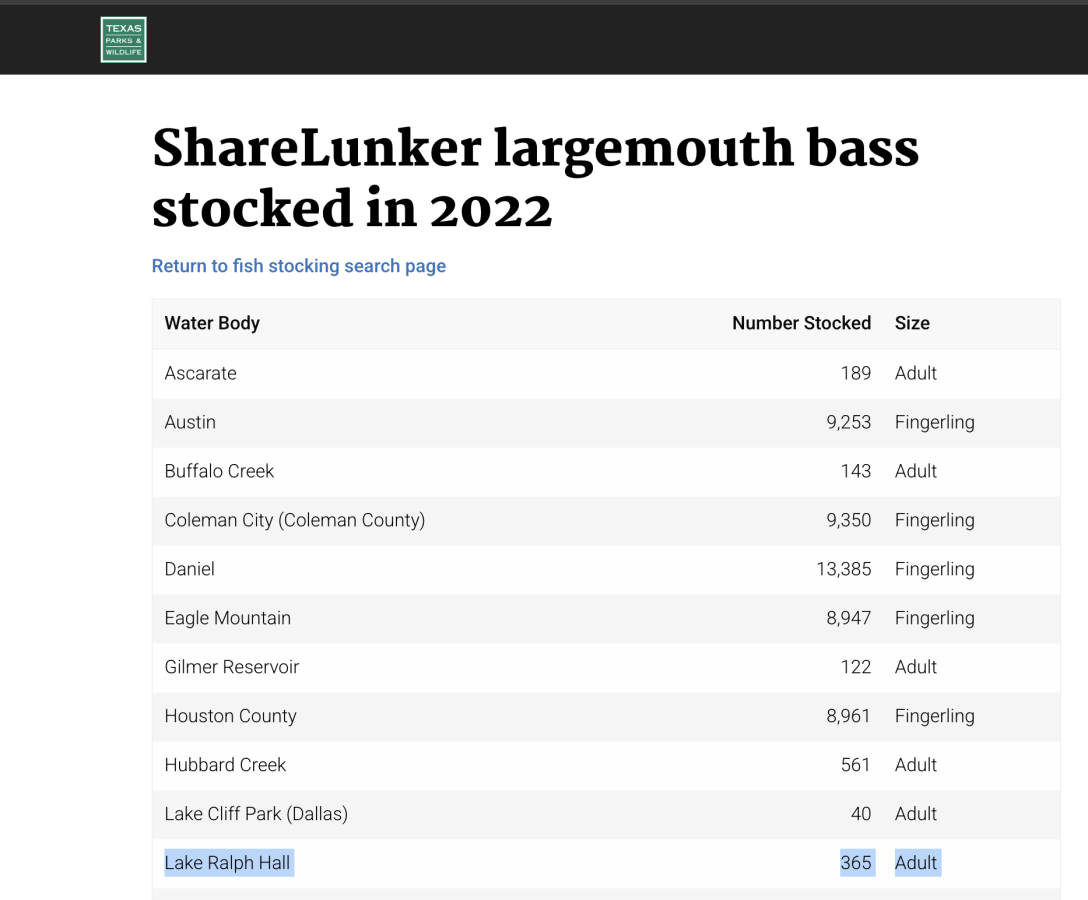 They have already stocked 365 Adult Sharelunker bass in it in 2022...giving them 3 years to spawn and grow.